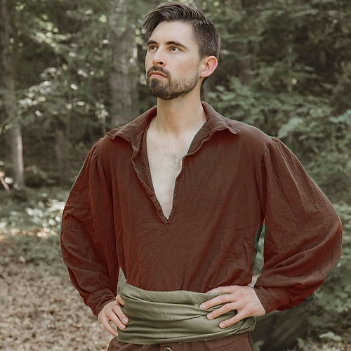 Retrò Vintage Medievale Rinascimento Camicia Lunghe Vichingo Ranger Scollo a V Costume Per uomo Halloween Carnevale Fiera Rinascimentale LARP Festa a tema retrò Adulti Maglietta Tutte le stagioni