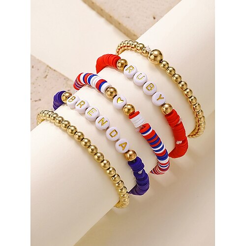 Set di braccialetti per donne in acrilico con perline dell'anniversario dei 250 anni degli Stati Uniti disponibili in più stili tema libertà USA perfetti per abbigliamento casual