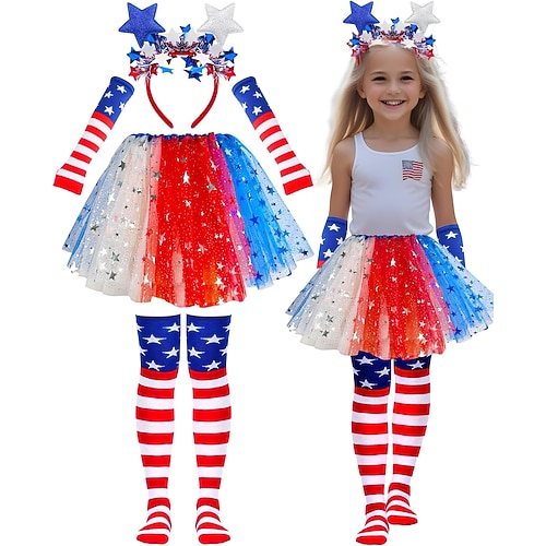 Americano 250 Disco Anni '80 Gonna a cerchio Tutu Sottogonna con accessori Costume Ragazze Carnevale 2026 Costume di Carnevale Halloween Carnevale Mascherata Giorno dell'Indipendenza 4 luglio