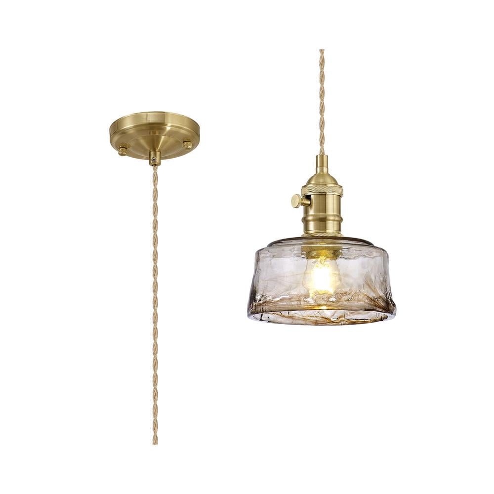 Alaskan 17cm Switched Pendant 1.5m 1xE27 Brass / Pale Gold Twisted Cable / Brown Bowl Glass Luxuria
