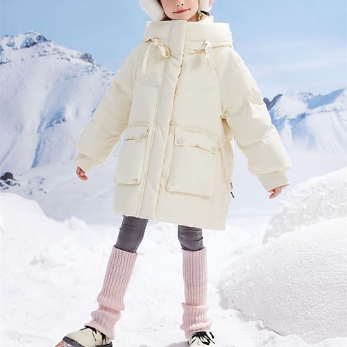 Bambino Da ragazza Piume Tinta unica Di tendenza Tasche Scuola Cappotto Capispalla 4-12 anni Autunno Nero Bianco Rosa