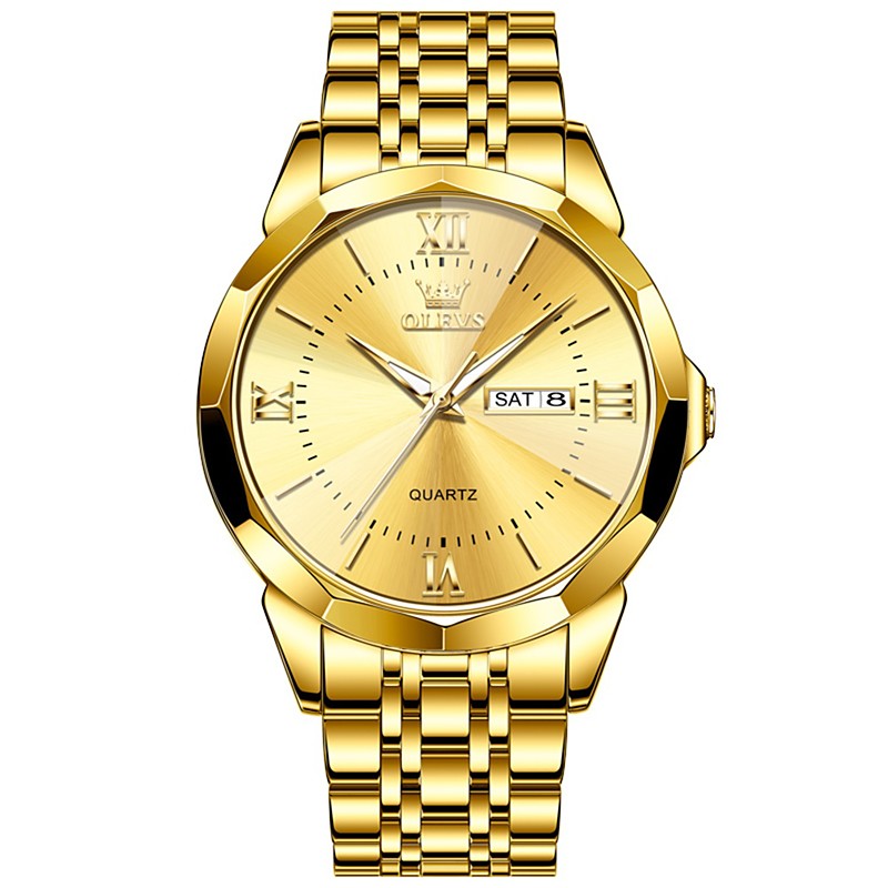 New Olevs Brand Men'S Luminous Commercial Business Steel Belt Watch Calendar Week Display Fashion Trend Waterproof Simple Leisure Quartz Watch Diamond-Shaped Mirror Sports Watch