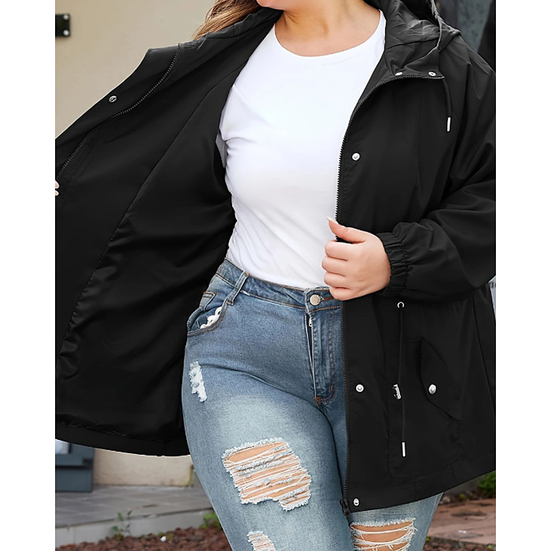 Women's Trench Coat Waterproof Rain Jackets Rain Coats With Hood Waterproof Windproof Zipper Pocket Fashion Outdoor Plain Going out Weekend Zipper Regular Hooded Regular Fit Long Sleeve Outerwear