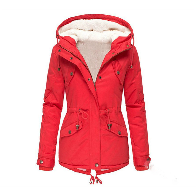 Women's Casual Jacket Warm Comfortable Fur Trim Zipper Pocket Fashion Outdoor Plain Going out Weekend Zipper Regular Hooded Regular Fit Long Sleeve Outerwear Black Pink Red Fall Winter