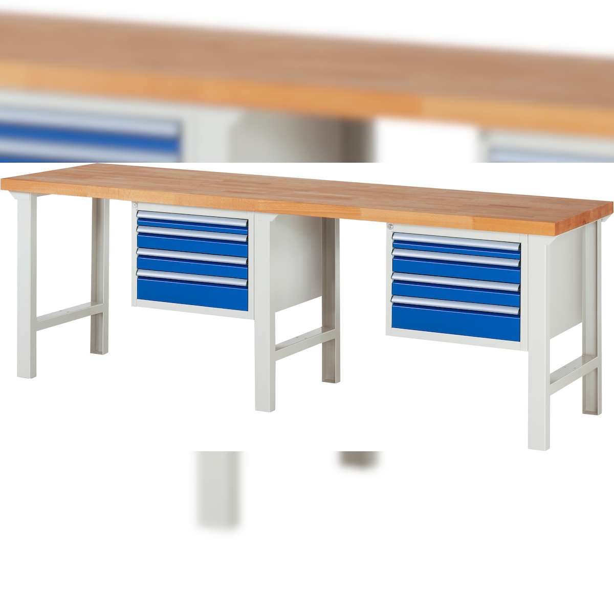 Werkbank, Baukastensystem Serie 7000, 10 Schubladen, extrabreit, BxT 2500 x 700 mm eurokraft pro