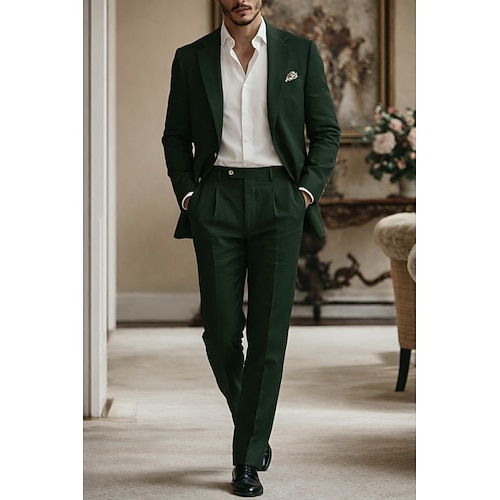 Uomo Completi in Lino Abiti da lavoro Casuale Affari Bianco Verde scuro Primavera Estate Tuta Bavero classico Moda Quotidiano Tinta unita Vestibilità su misura 2 pezzi Monopetto Due Bottoni