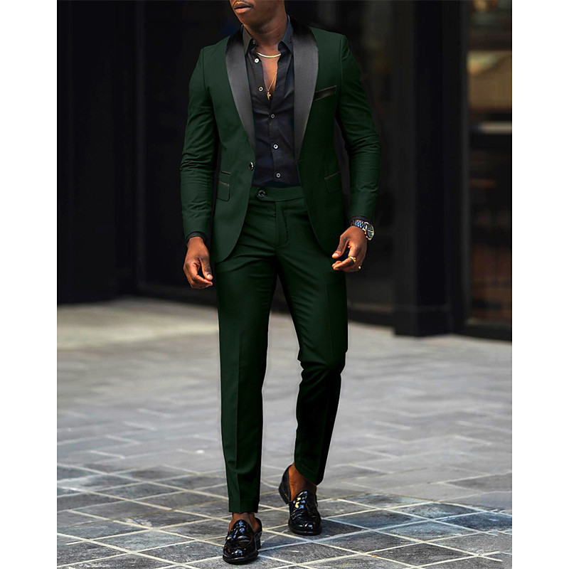Men's BlazerDress Pants Blazer Suits Business Cocktail Party Wedding Party 2 Piece Fashion Casual Spring Fall Polyester Color Block Pocket Buttons Comfortable Single Breasted Blazer Dark Gray Black