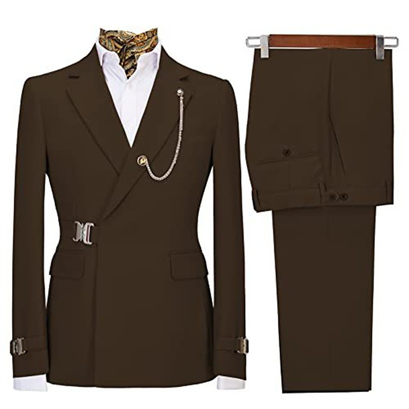 Men's BlazerDress Pants Blazer Jacket Business Work Party Includes A Top And Bottom Vintage Fashion Fall Winter Nylon Solid Color 2 Piece Single Breasted Blazer Blue Dark Gray Black Yellow