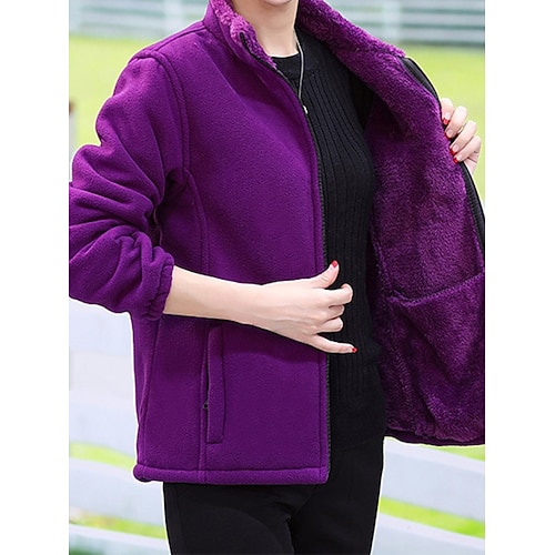 Per donna Giacca Sherpa Confortevole Traspirante Cerniera Tasca Casual Semplice Vacanza Streetwear Casuale Abbigliamento quotidiano Cerniera Regolare Collo alla coreana Vestibilità comoda Manica Lunga