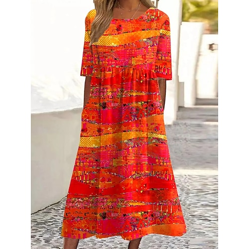 Per donna Abito maxi Vestito Casual Classico Spiaggia Vestibilità comoda Grafico Astratto Mezza Manica Girocollo Blu Nero Viola Arancione Estate Primavera