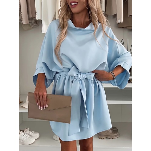 Per donna Mini Abito Abito a trapezio Abito Estivo Casual Quotidiano Vestibilità comoda Semplice Manica 3/4 Girocollo Blu Rosa Viola chiaro Viola Estate Primavera
