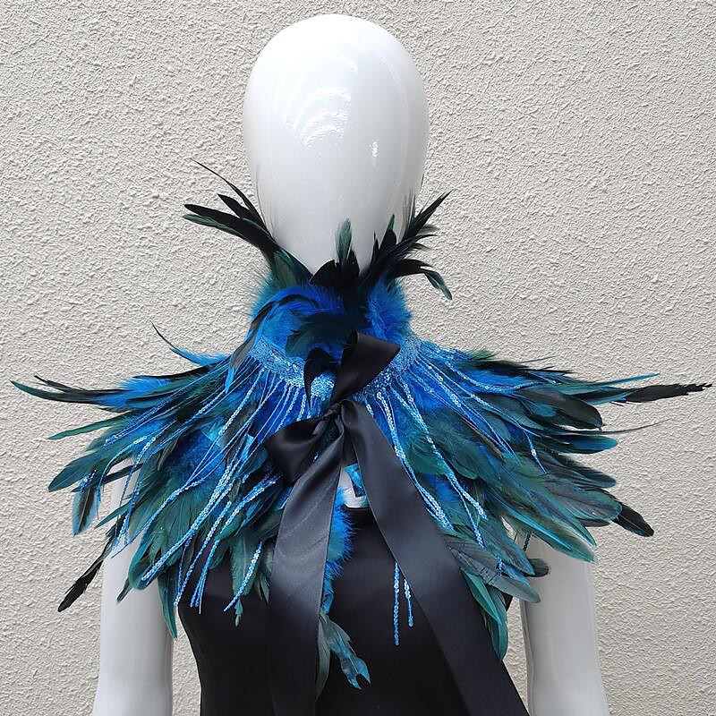 Carnival 2026Rio Carnival Samba Accessories Women's Mardi Gras Feather Cape Shawl, Purple Green Gold Feather Poncho with Jeweled Collar Brazil Festival Performance Costume