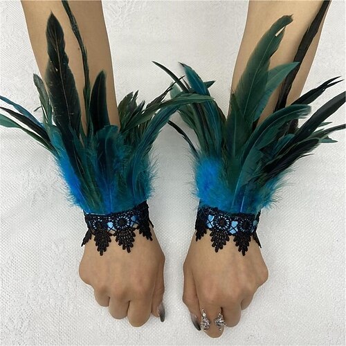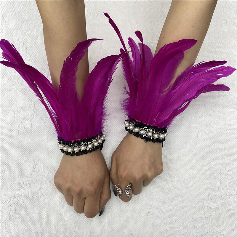 Carnival 2026Rio Carnival Samba Accessories Women's Black Feather Wrist Cuffs with Pearl Lace, 1 Pair Natural Feather Wristband Bracelets Brazil Festival Performance Costume