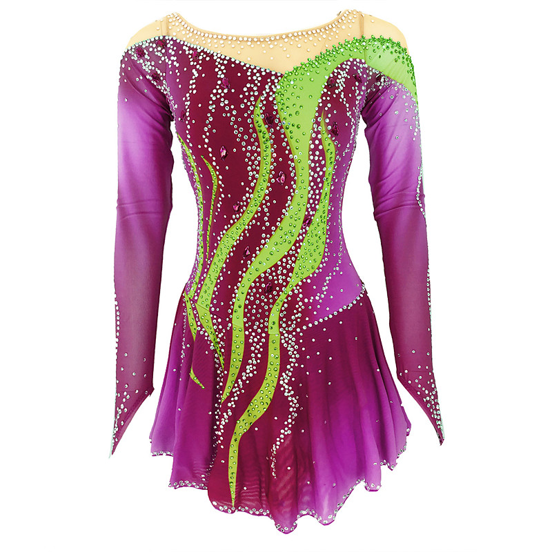 Figure Skating Dress Women's Girls' Ice Skating Dress Purple High Elasticity Training Competition Skating Wear Classic Crystal / Rhinestone Long Sleeve Ice Skating Figure Skating