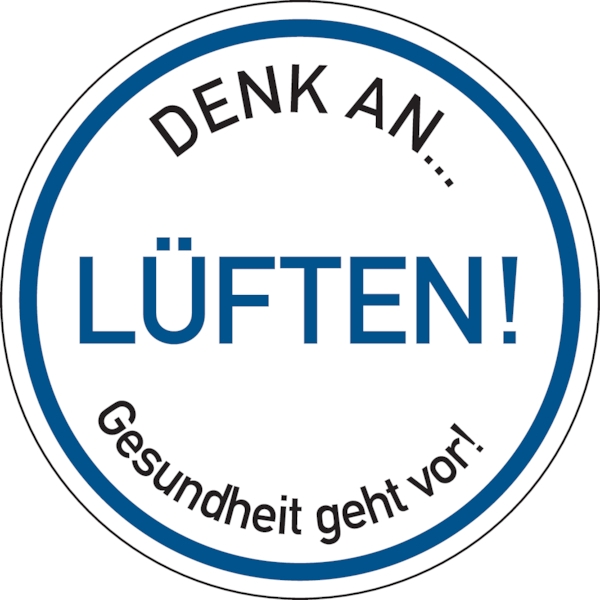 Hinweisschild, Denk an LÜFTEN..., Folie selbstklebend - 200 mm Folie selbstklebend