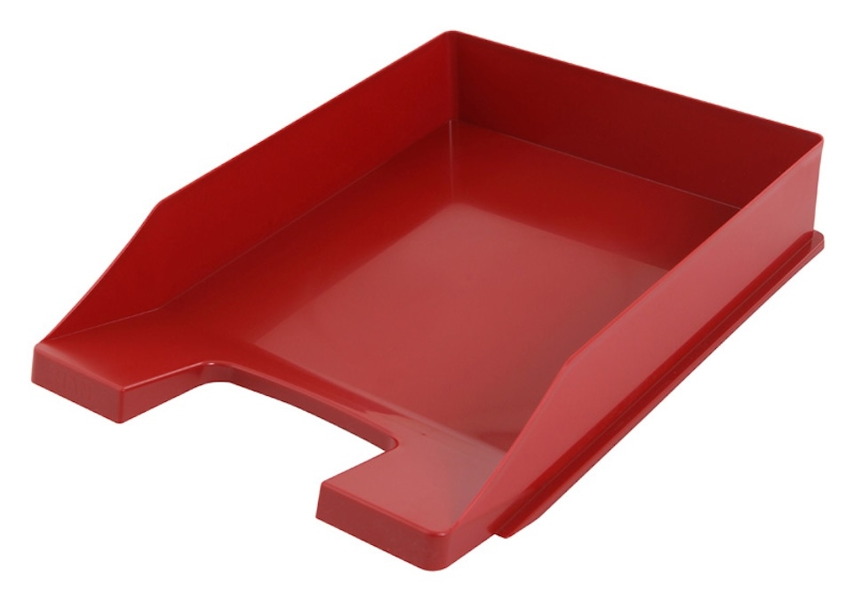 PROREGAL Stapelbare Briefablage aus Kunststoff | HxBxT 6,5x25,5x34,8cm | Bis DIN A4-Format | 10 Stück | Rot