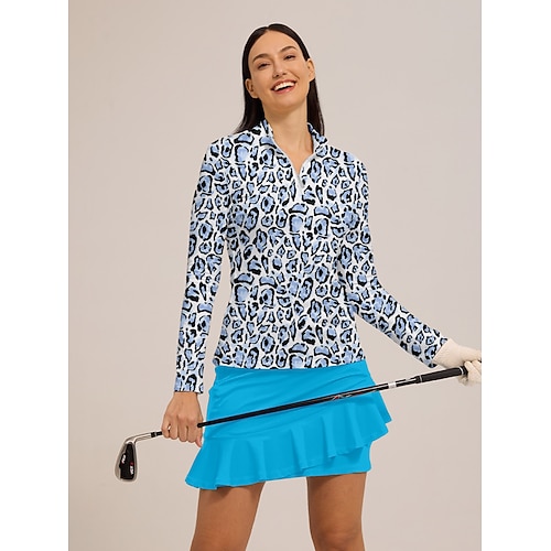 Per donna POLO Rosa Blu Verde Menta Manica lunga Superiore Leopardo Abbigliamento da golf da donna Abbigliamento Abiti Abbigliamento