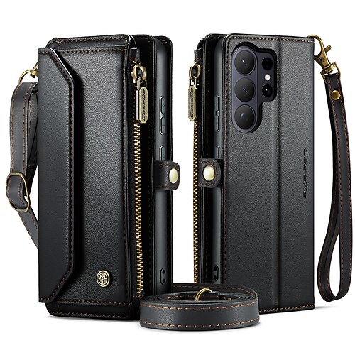 Handy Hülle Handyhüllen Für Samsung Galaxy S26 S26 Ultra Plus Brieftaschenhülle Mit Ständer Reisverschluss mit Trageriemen Retro TPU PU-Leder