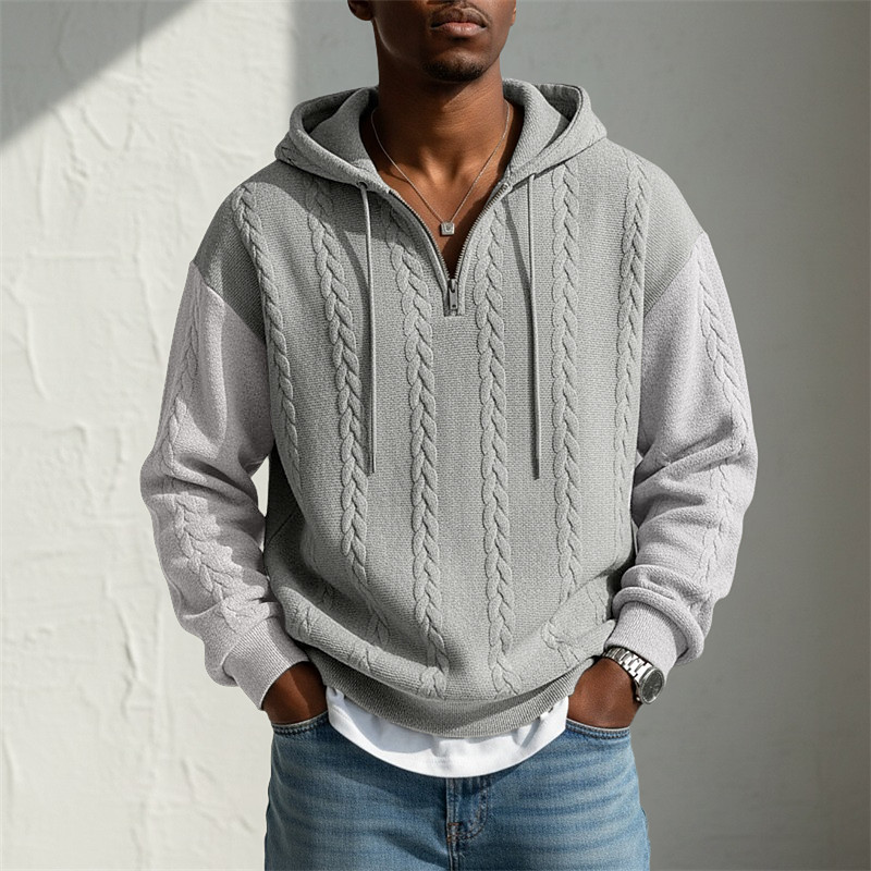 Men's Jacquard Hoodie Pullover Hoodie Sweatshirt Quarter Zip Hoodie Light Green Light Grey Hooded Plain Patchwork Color Block Textured Casual Daily Sports Outdoor Streetwear Cool Sportswear Fall