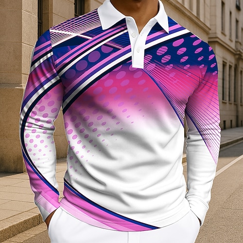 Per uomo Geometrico Linea Polo Manica Lunga Magliette polo Bavero Business Casual Athleisure Abbigliamento quotidiano Stampa 3D Bottoni Primavera Autunno Inverno azzurro cielo Rosa scuro Blu