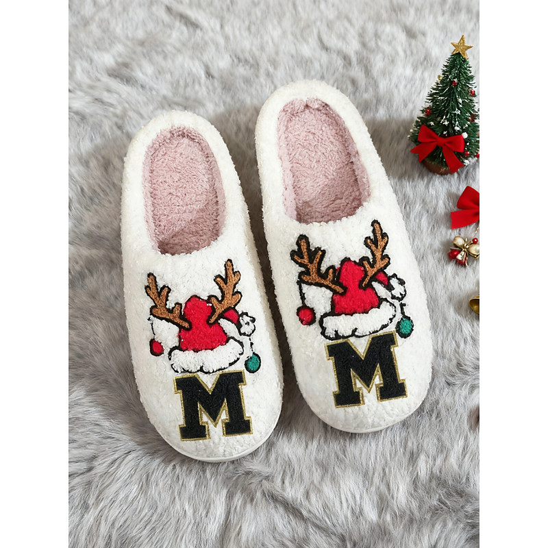 Women's Cozy Christmas Slippers with Reindeer Design – Soft Slippers with 26 Letters to Choose, Holiday Themed, Perfect for Lounging Gift Giving