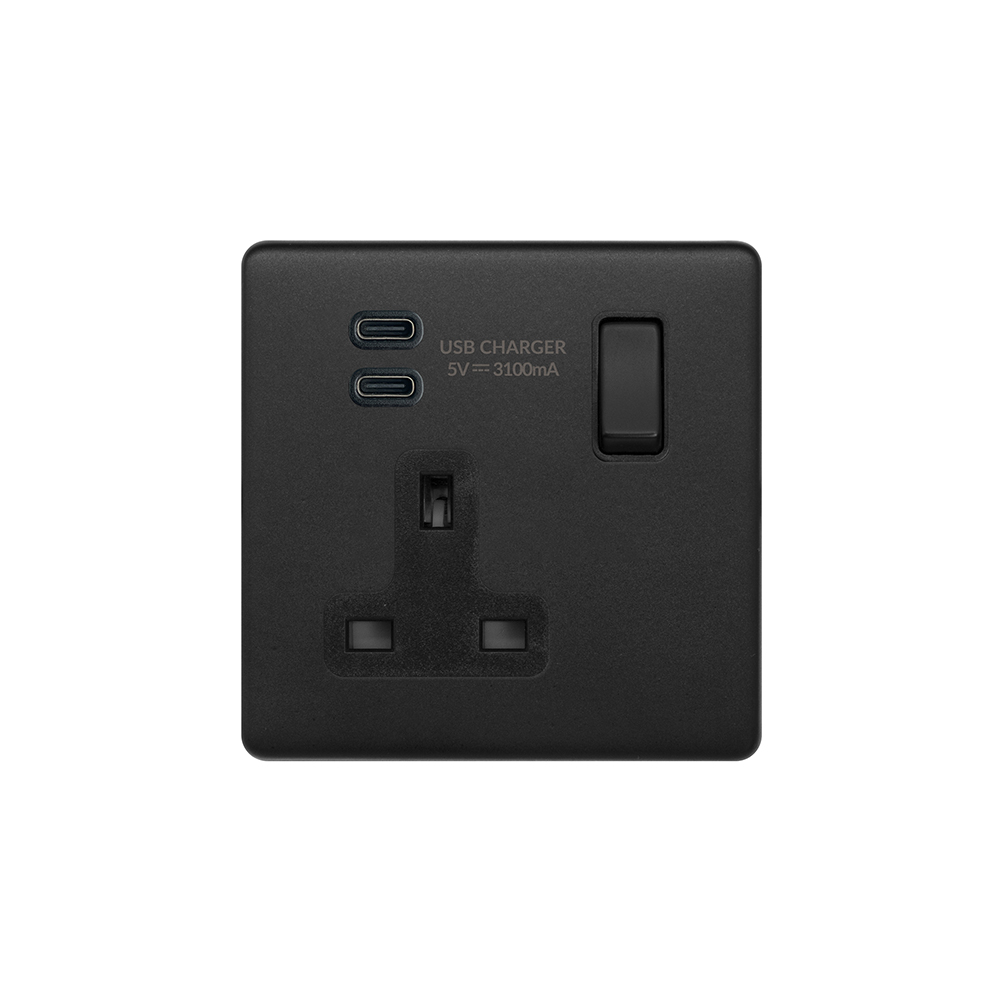 Soho Lighting Primed Paintable 13A 1 Gang Double Pole Switched USB Socket (USB Output 2.1amp) with White Switch - Size: 86mm x 86mm x 4.5mm