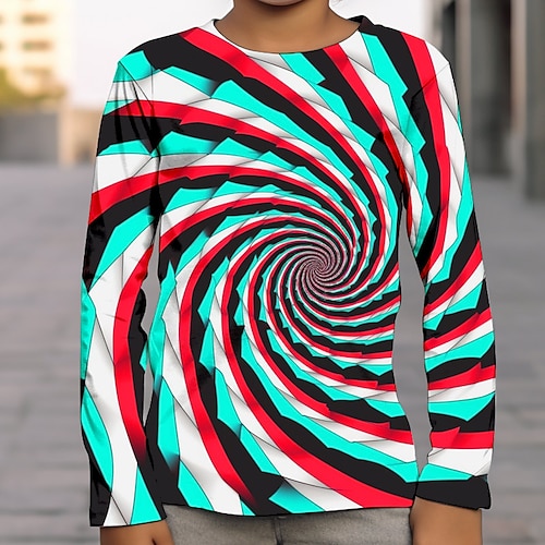 Jungen T-Shirt mit 3D-Grafik und optischer Täuschung, langärmlig, 3D-Druck, Sommer, Frühling, Herbst, Sport, Mode, Streetwear, Polyester, Kinder, 4–12 Jahre, Outdoor, lässig, täglich, normale Passform