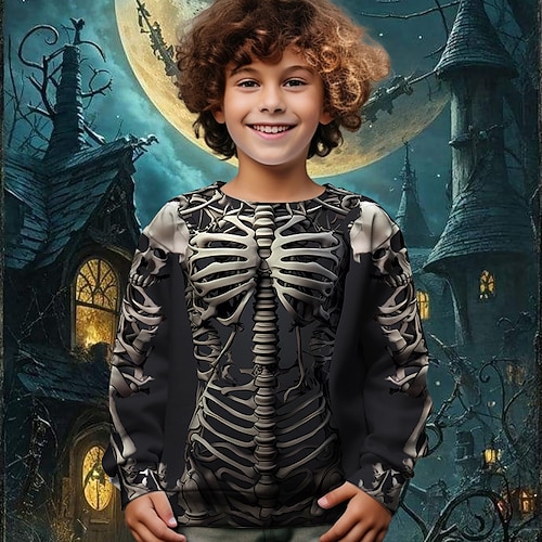 Halloween Jungen 3D Totenkopf T-Shirt Langarm Frühling Herbst Mode Basic Kinder 4-12 Jahre Rundhalsausschnitt Outdoor Casual Alltag Regular Fit