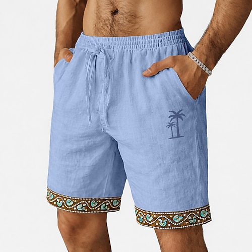 Per uomo Shorts Shorts di Lino Pantaloncini Estivi Shorts da Spiaggia Coulisse Elastico in vita Grafico Albero di Cocco Leggero Traspirante Lunghezza al ginocchio Casuale Quotidiano Spiaggia Vacanza