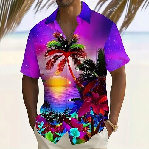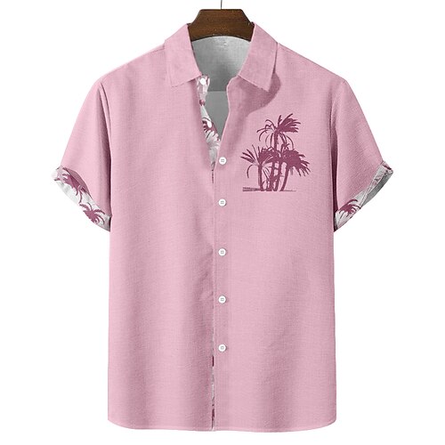 Per uomo Palma di Cocco Camicia casual Camicia hawaiana estiva Camicia Aloha Manica Corta Hawaiano Resort Casual Casuale Estate Primavera Collo ripiegato Cardigan con Bottoni Rosa Blu Verde Grigio