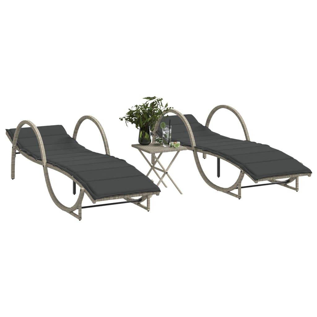 Liggestole 2 stk. med bord polyrattan lysegrå