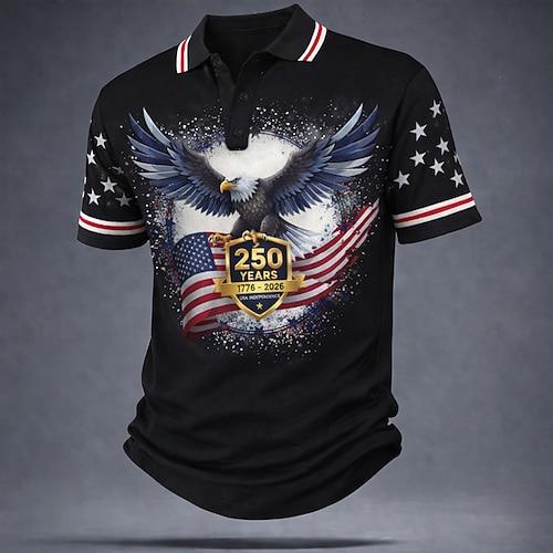 4. Juli 2026 250. Herren Amerikanische US-Flagge Poloshirts Kurzarm Polo-Shirts Hemden mit Kragen Lässig Streetwear Athleisure Knöpfe Atmungsaktives Gewebe Frühling Sommer Blau Rote Grau