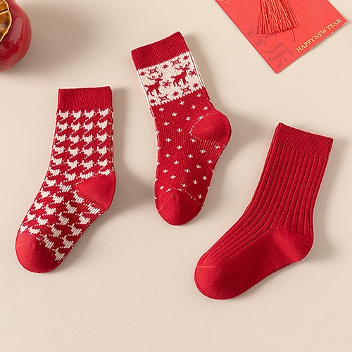 Kinder Jungen 3 Paare Weihnachten Weihnachtsgeschenk Socken Weiß Wein Rote Karomuster Jeder Druck Herbst Winter Alltagskleidung