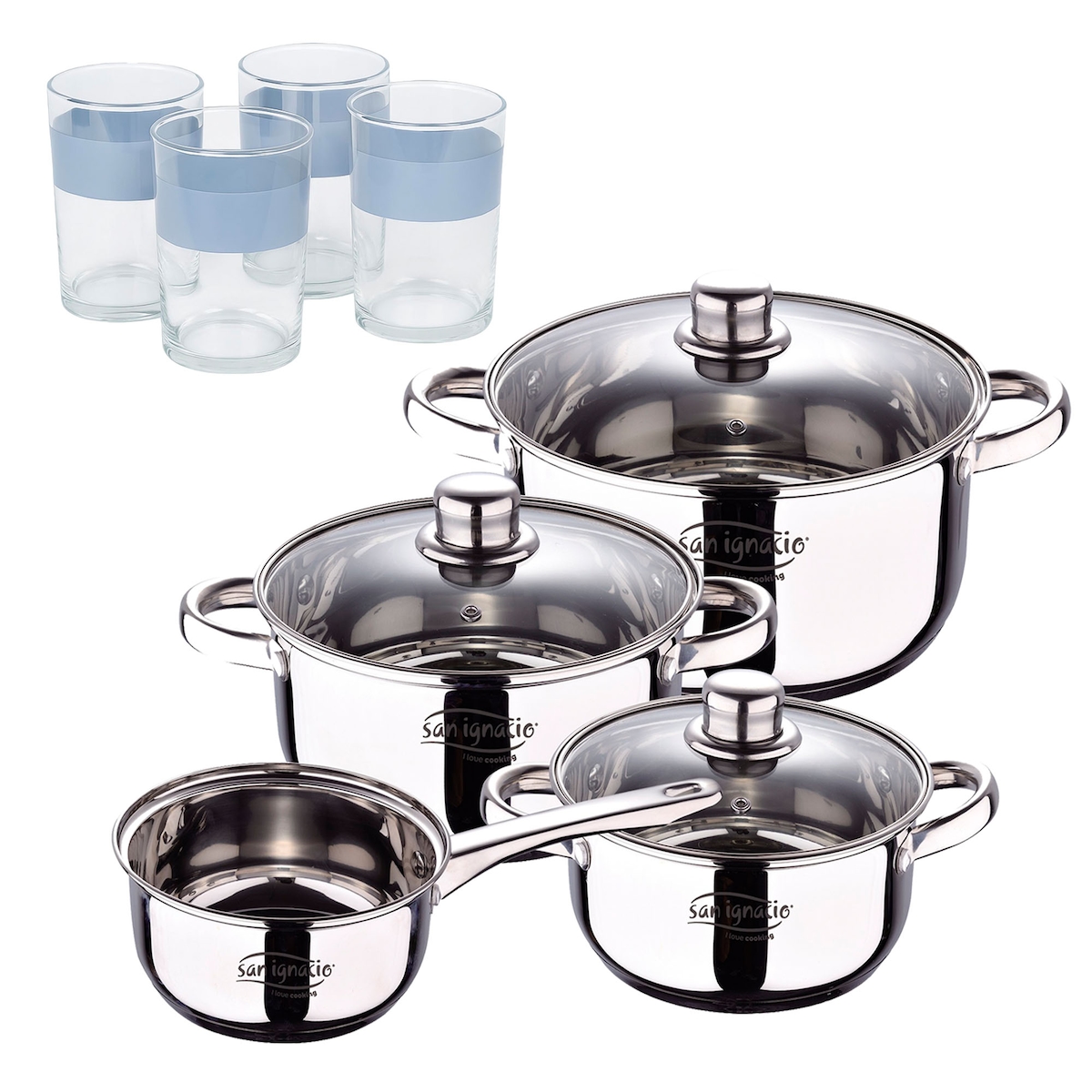 BERGNER - Cassel 7-teiliges Edelstahl-Kochgeschirr-Set mit 4 x 0,5-Liter-Bechern NOIA