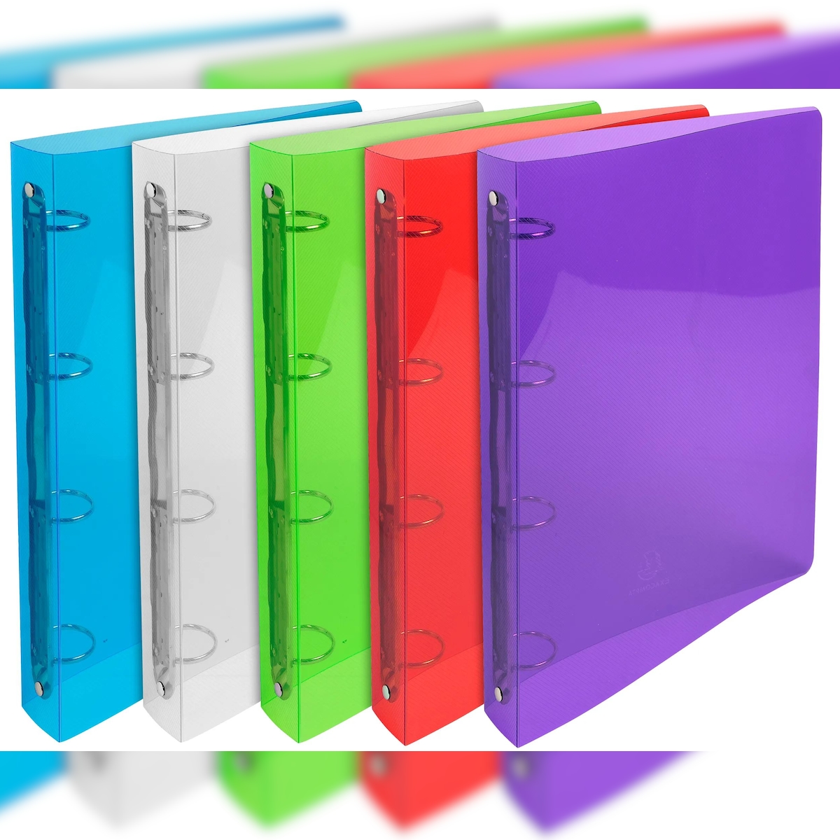 Exacompta 51298E 20x Ringbuch aus PP 700µ mit 4 Ringen 30mm, Rücken 40mm, Crystal, für Format DIN A4 - Farben sortiert