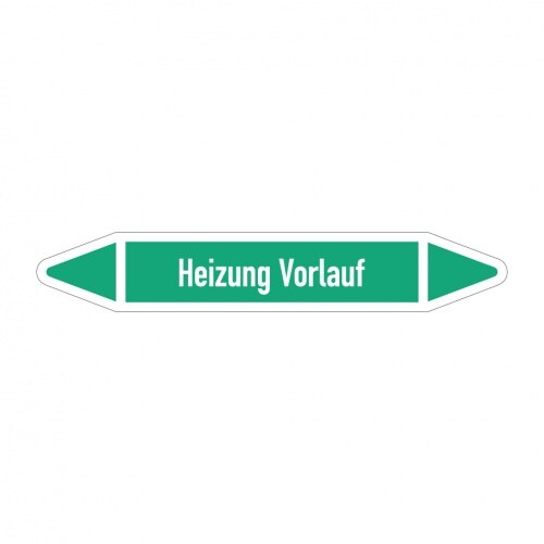 Aufkleber I RKZ-Etikett Heizung Vorlauf,DIN 2403,grün/weiß,für Ø 25-40mm,154x26mm,5/Bogen