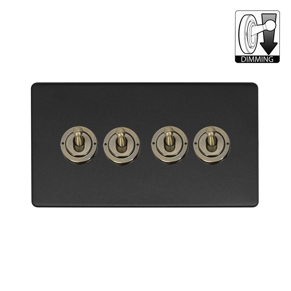 Soho Lighting Lighting Matt Black & Antique Brass 4 Gang Dimming Toggle Switch