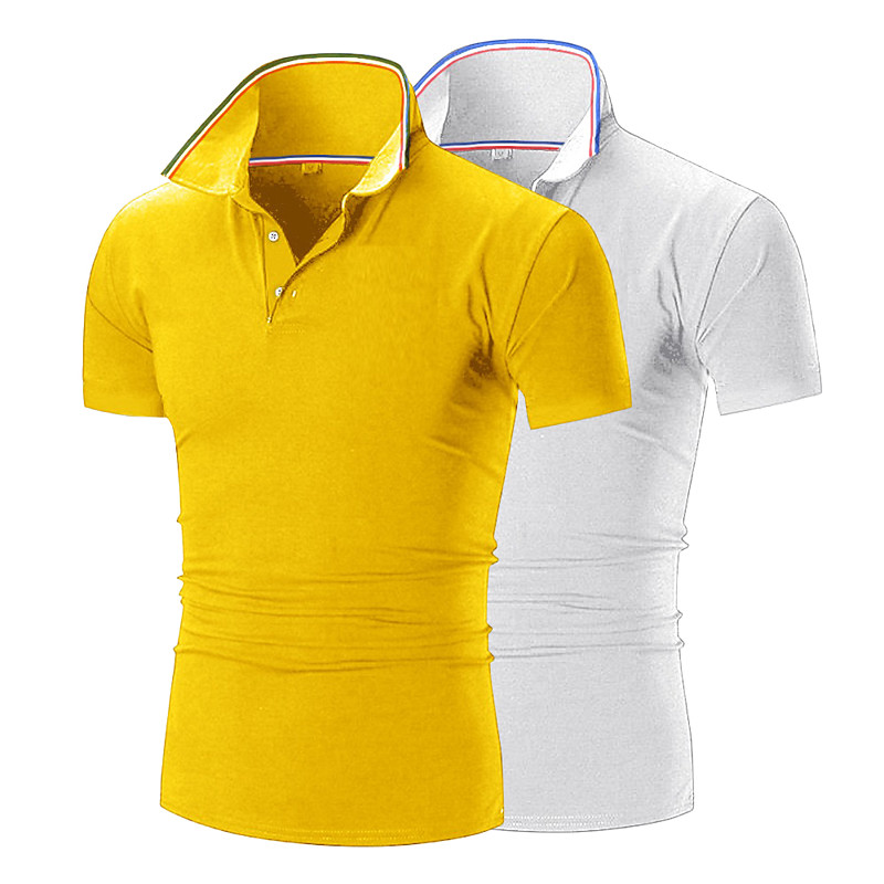 2 Piece Men's Golf Shirt Pique Polo Shirt Business Casual Ribbed Polo Collar Short Sleeve Fashion Basic Solid Color 2 Pcs Buttons Summer Spring Fall All Seasons Golf Shirt