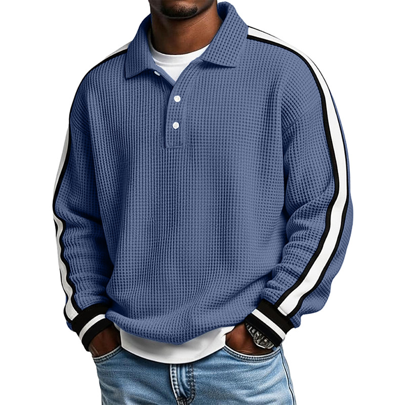 Men's Waffle Polo Shirts Textured Sports Outdoor Casual Lapel Long Sleeve Streetwear Cool Plain Classic Style Textured Fall Spring Fall Regular Fit Apricot Black Light Green Army Green Navy Blue