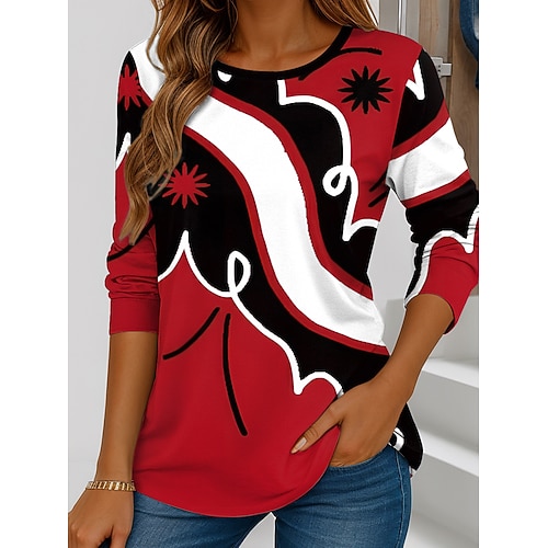 Natale Donne T Shirt Claus Vintage Stiloso Classico Maniche Lunghe Collo Rotondo Regular Top Weekend Stampa Verde Salvia Verde Militare Blu Reale Blu Oro Inverno