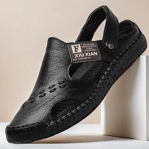 Herren-Slipper aus dunkelbraunem Kunstleder mit robuster, rutschfester Sohle, bequeme Outdoor-Wanderschuhe für die Freizeit und auf Reisen
