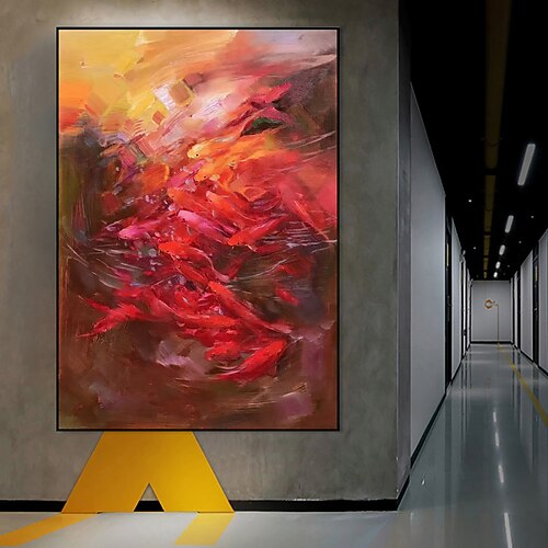 handgefertigtes Ölgemälde auf Leinwand, Wandkunst, Dekoration, modernes Tier, roter Koi für Wohnkultur, gerolltes, rahmenloses, ungedehntes Gemälde