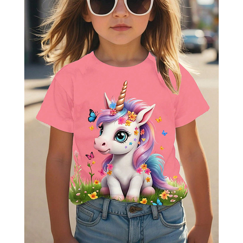Girls' 3D Graphic Unicorn T shirt Tee Short Sleeve Summer Spring Fashion Basic Kids 4-12 Years Crew Neck Outdoor Casual Daily Regular Fit