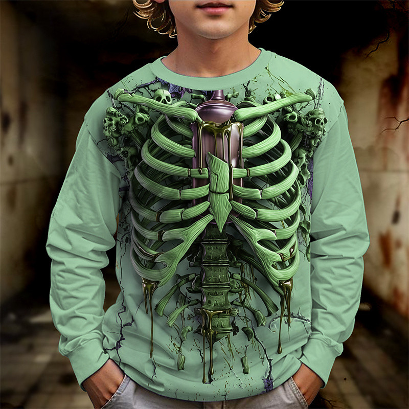 Halloween Boys' 3D Skull T shirt Tee Long Sleeve Spring Fall Fashion Basic Kids 4-12 Years Crew Neck Outdoor Casual Daily Regular Fit