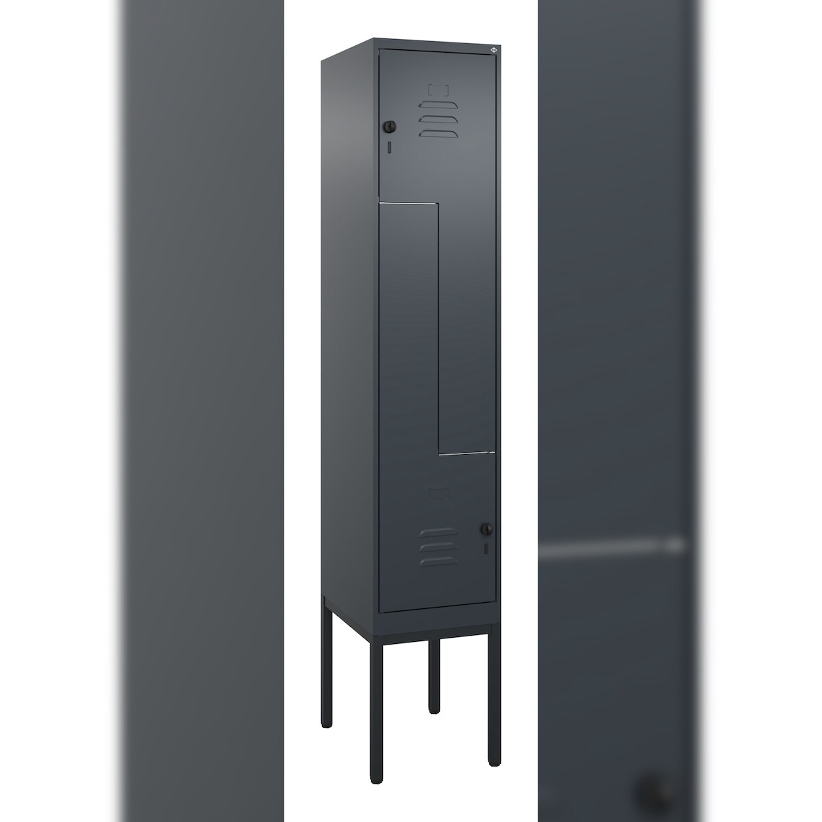 C+P Z-Spind Classic PLUS, Gestell, 2 Abteile, HxBxT 212x40x50cm, Sicherheitsdrehriegel, Anthrazit von PROREGAL