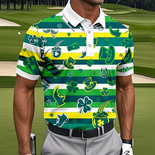 Polo golf sportivo con trifoglio St. Patrick da uomo polo a maniche corte camicie colletto casual athleisure bottoni estate primavera giallo arancione verde