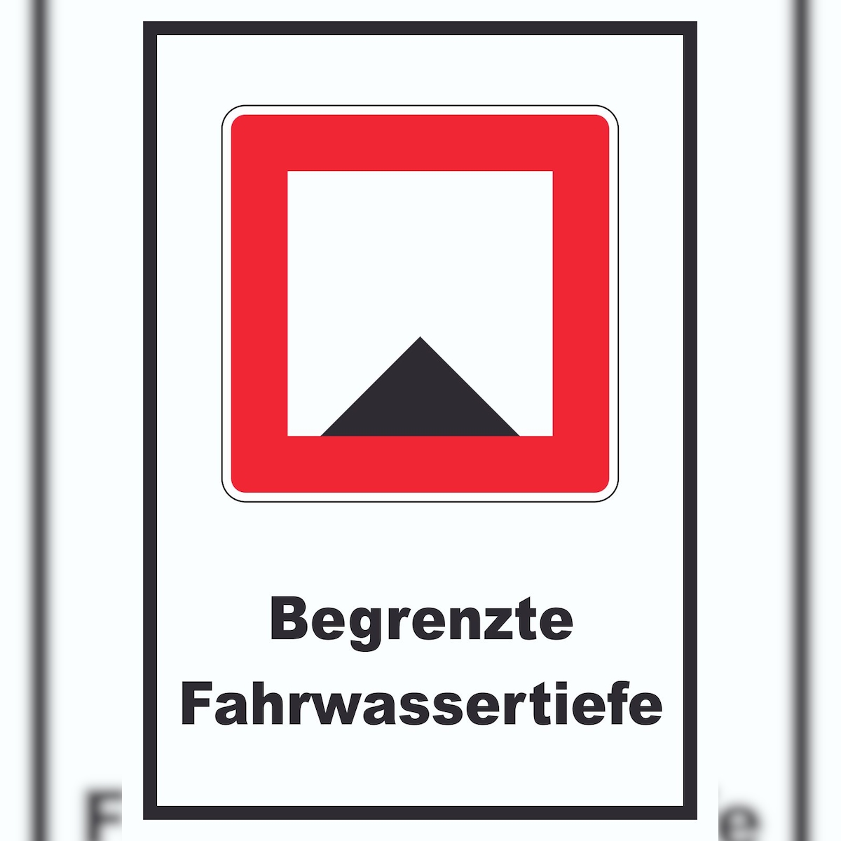 HB-Druck Begrenzte Fahrwassertiefe Tiefe unter Wassserspiegel begrenzt Symbol und Text A0 (841x1189mm)