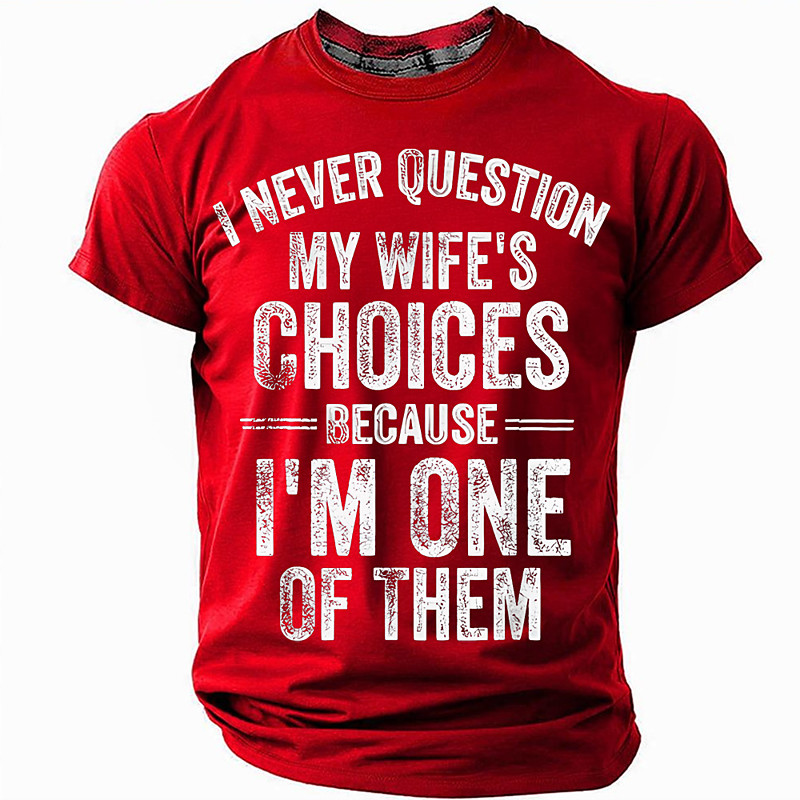 Men's Funny Graphic T-Shirt: I Never Question My Wife's Choices Because I'm One of Them Husband Relationship Humor
