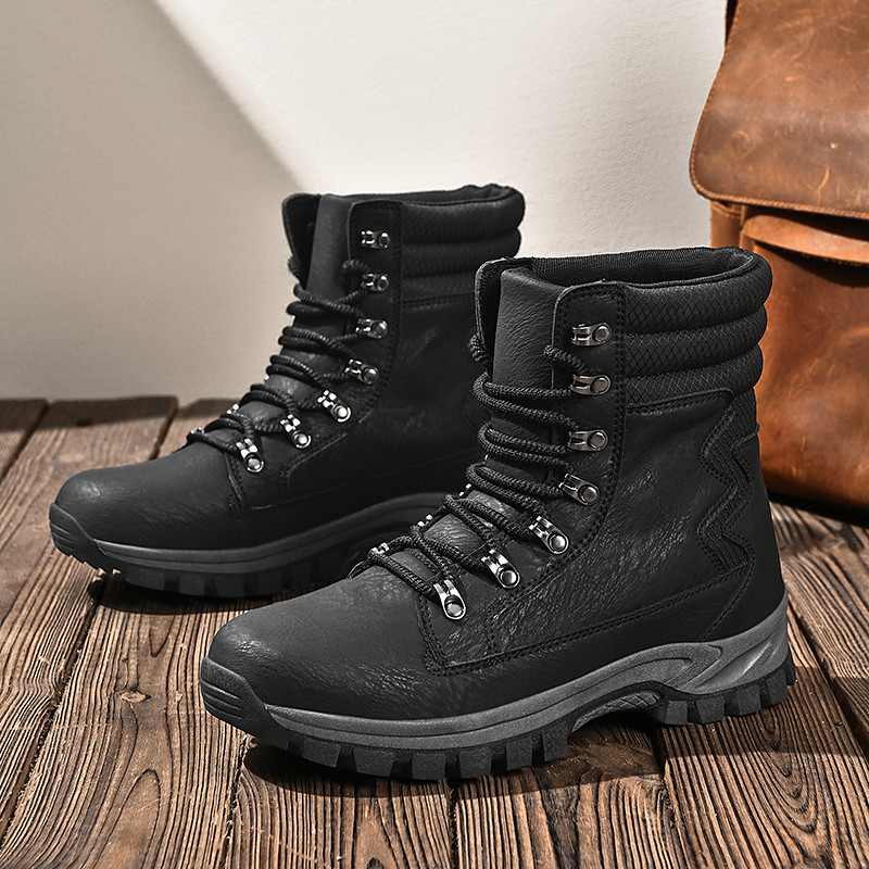 Men's High - Top PU Leather Outdoor Casual Boots Anti - Slip Sole for Hiking Daily Wear
