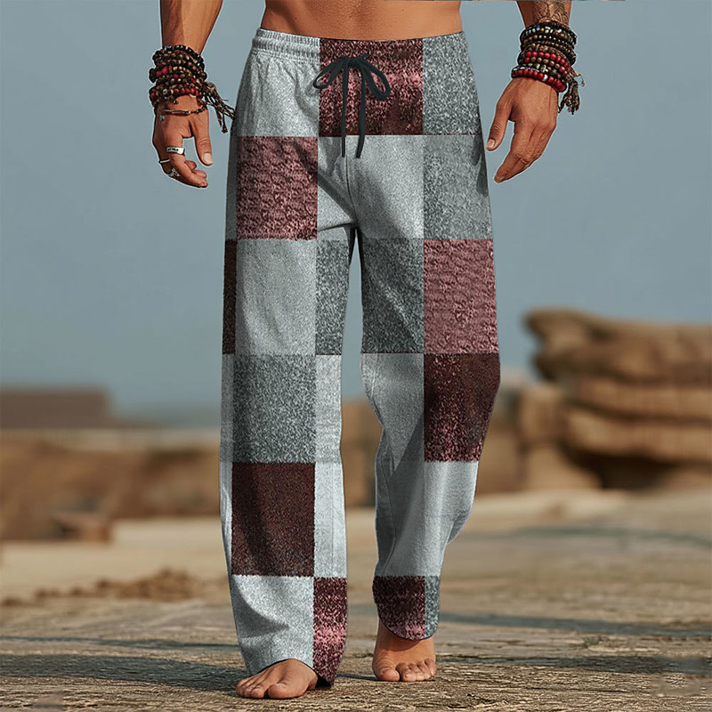 Men's Geometric Color Block Patchwork Trousers Baggy Pants Casual Pants Mid Waist Fashion Home Outdoor Vacation Elastic Drawstring Waist Linen-Like Pants with Pockets Summer Spring 3D Print Blue